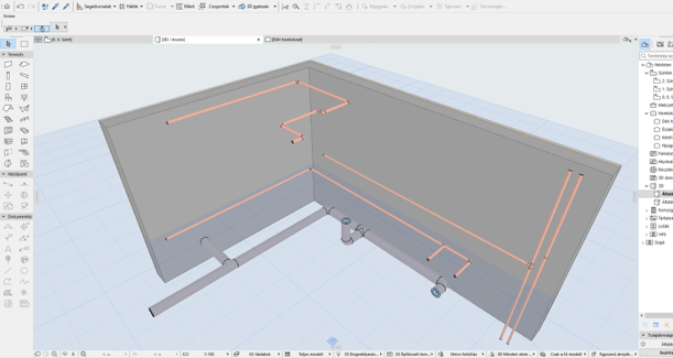 az a vicces, hogy mindkettőben benne vannak azok a parancsok, amelyeket tervezés közben használnál. De például az ArchiCAD-ben annyira értelmezhetetlenül külön van minden, hogy a legtöbb felhasználónak nincs kedve nyomozni, hogy melyik elemet hol találja. Például: az alap tervezői felületen nincs kihelyezett gépészeti eszköztár. Persze a nyitófelületen kiválasztható a gépészeti sablon és akkor van, de általában az építészeti sablonból indul mindenki, szóval ez már probléma. Aztán ott van a berendezések, szaniterek kérdése. Hol vannak? A bútoroknál. Aztán a csőhálózat szerkesztése: strangot akarsz? Áh, felejtsd el. Egyből nem lehet csak úgy.