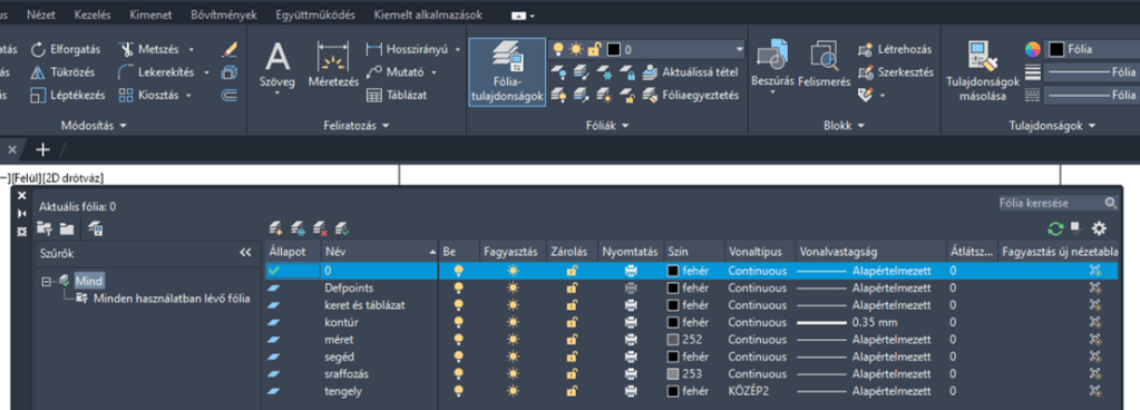 egy másik szoftverből hozzuk át az objektumokat, mert ott sokszor történik fóliakezelési hiba, vagy értelmezhetetlen programozási logika által okozott összevonás. Például, hogy ne menjek messzire: AutoCAD MAP3D. Ugyanaz a szoftvercsalád, tehát érteniük kellene egymást. És itt jön a csavar: a kerületi földhivatal kimenti a településrendezési tervet, átadja neked, te megnyitod és azt látod, hogy a piros fólia kék, a szaggatott vonal meg folyamatos (is). Ezek nem direkt hibák és többször nem a felhasználó okozza ismeret nélküli kattintásokkal, hanem maga a szoftver ilyen.